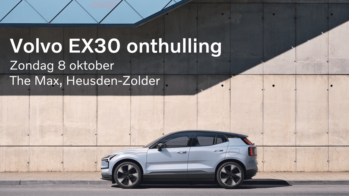 We nodigen u daarom graag uit op zondag 8 oktober in The Max (Marktplein 7, 3550 Heusden-Zolder) om de Volvo EX30 in het echt te komen bewonderen. Interesse? Schrijf u in via onderstaande knop en reserveer een tijdslot tussen 10u en 19u.